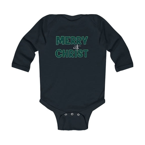 Infant Long Sleeve Graphic T-shirt - Merry with Christ - Green Plaid