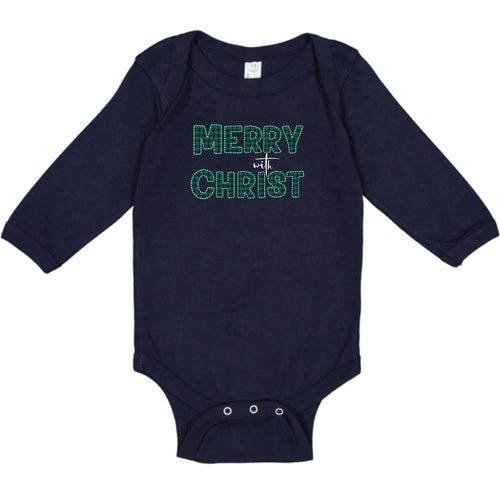 Infant Long Sleeve Graphic T-shirt - Merry with Christ - Green Plaid